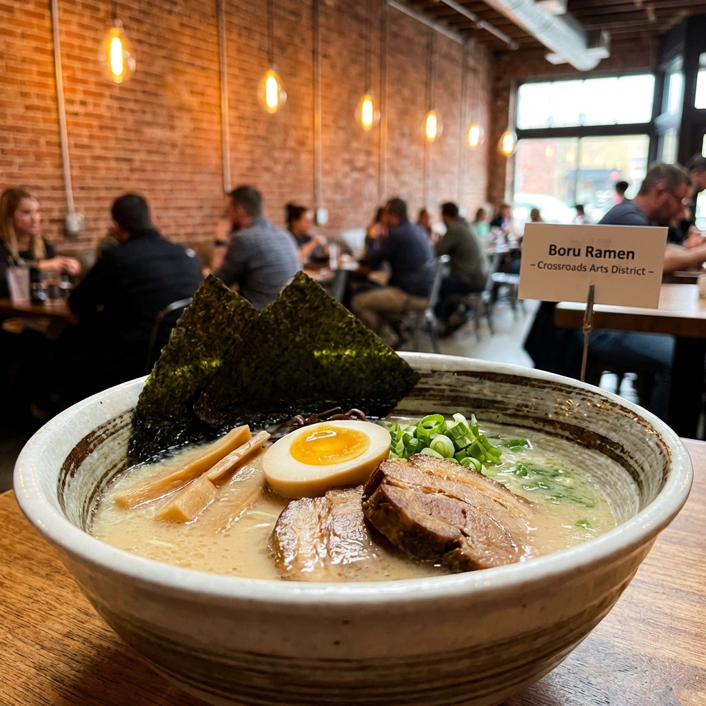 Handcrafted ramen bowls with rich broths and fresh ingredients in the Crossroads.